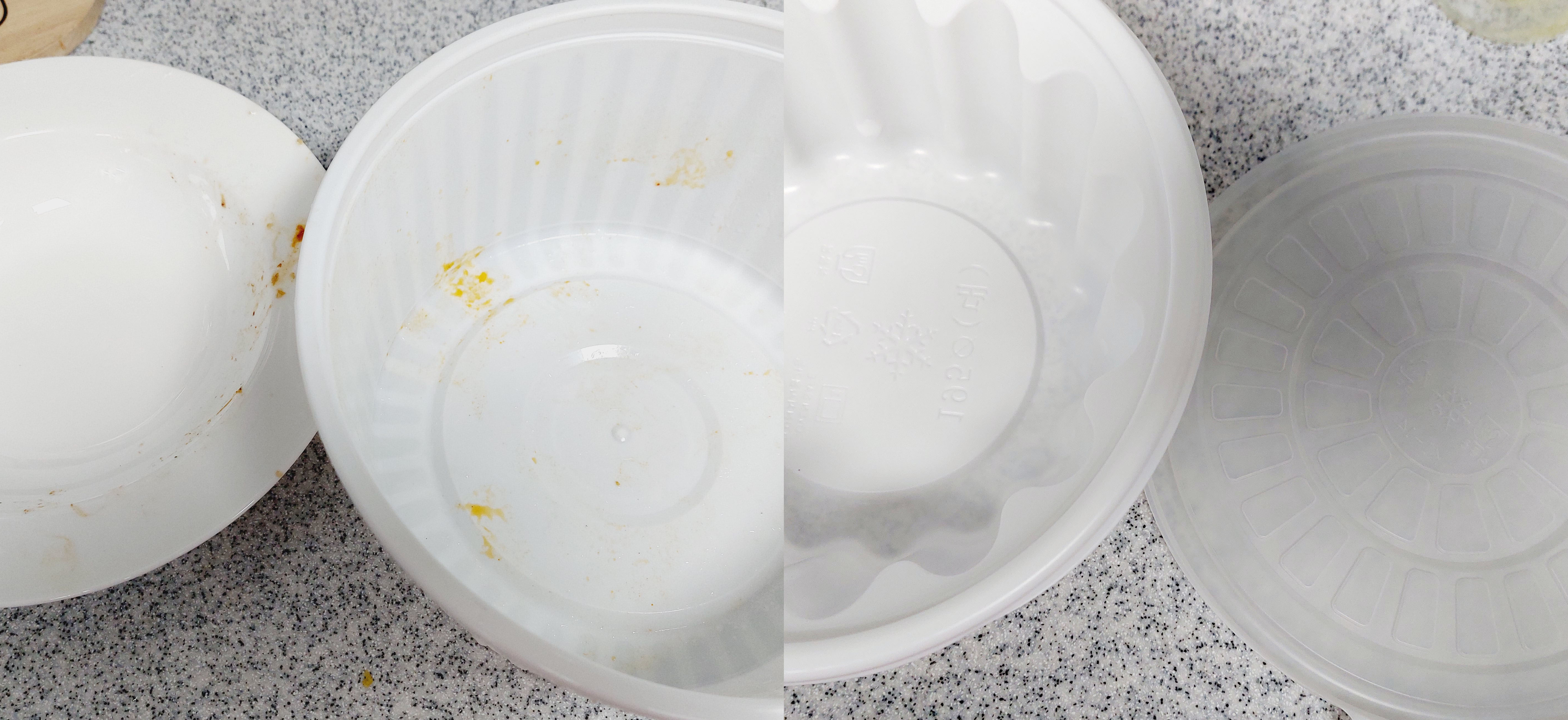 플라스틱 배달 용기 세척 전과 후